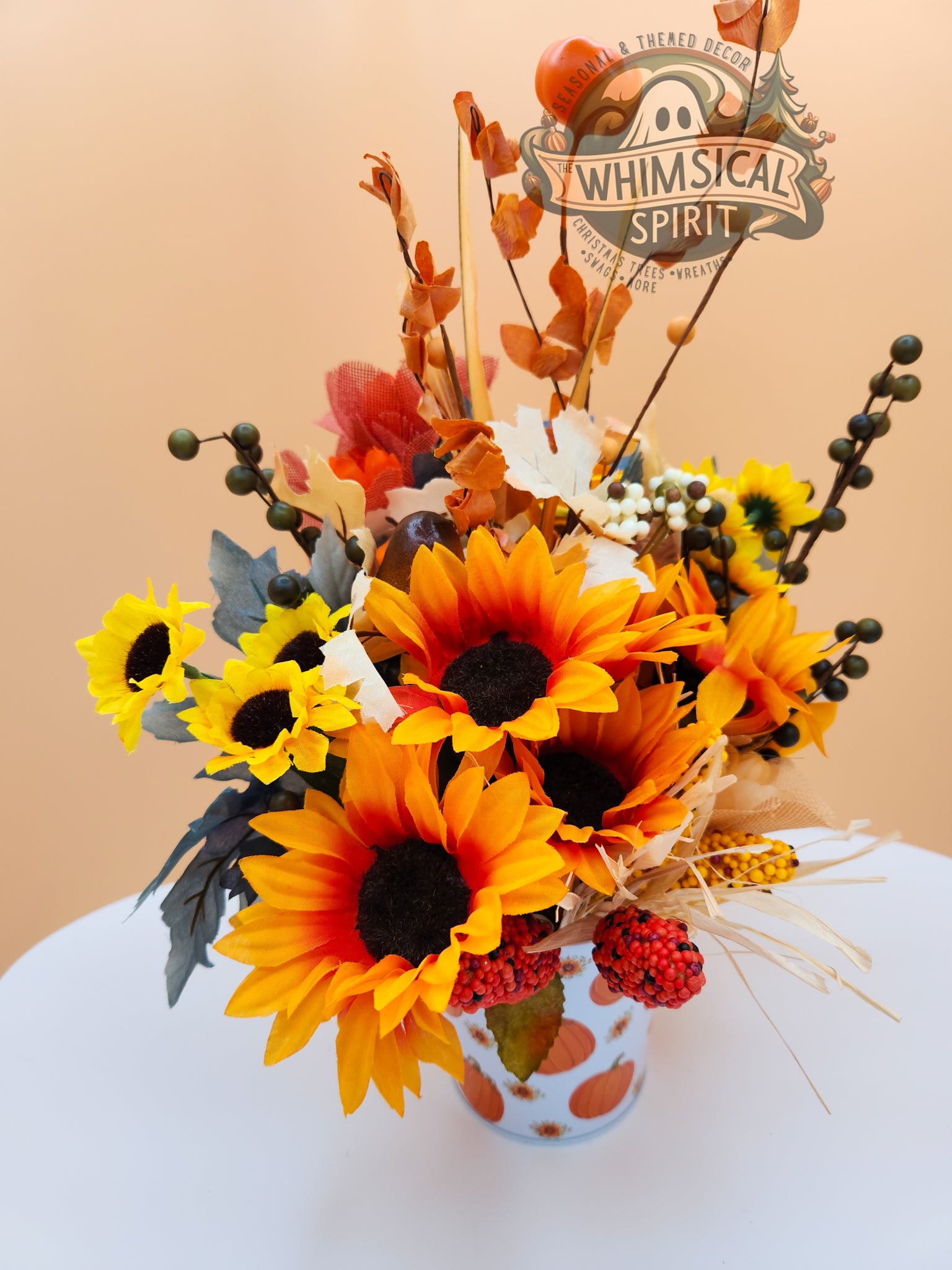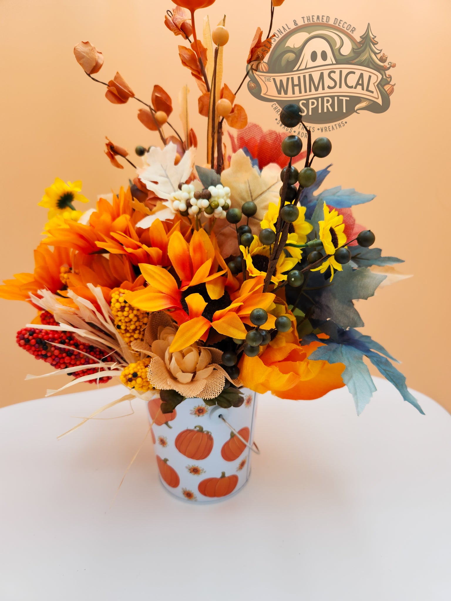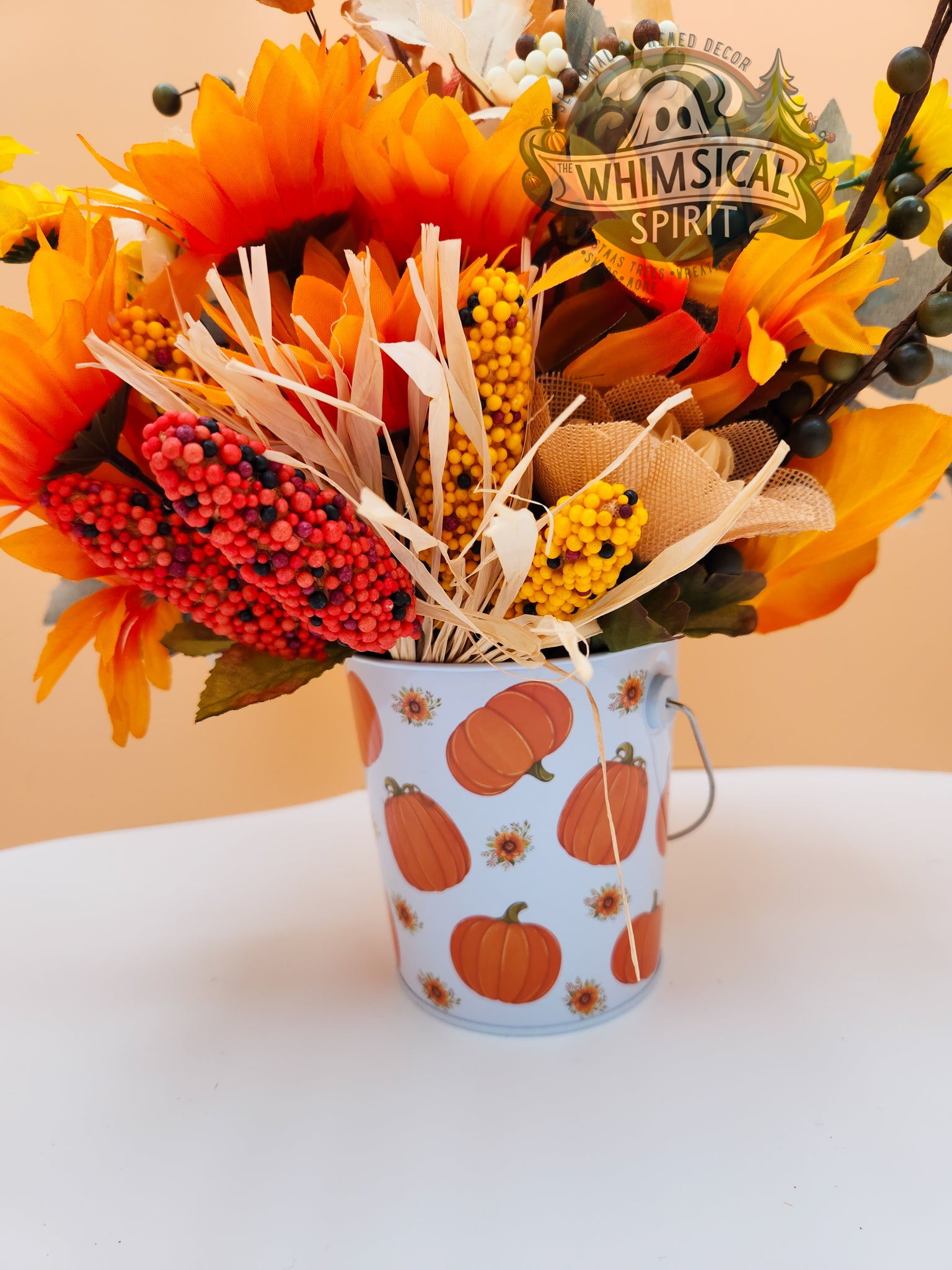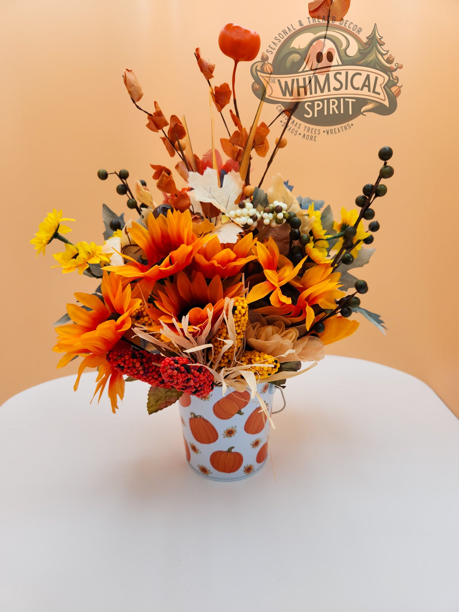 Bring the cozy glow of autumn into your home with this charming centerpiece. Rich amber tones, warm greenery, and touches of rustic elegance capture the heart of harvest season in a compact design perfect for your table, entryway, or cozy corner. Whether you're hosting a fall gathering or simply want to enjoy a hint of autumn all season long, Amber Harvest adds a welcoming touch that feels like home.