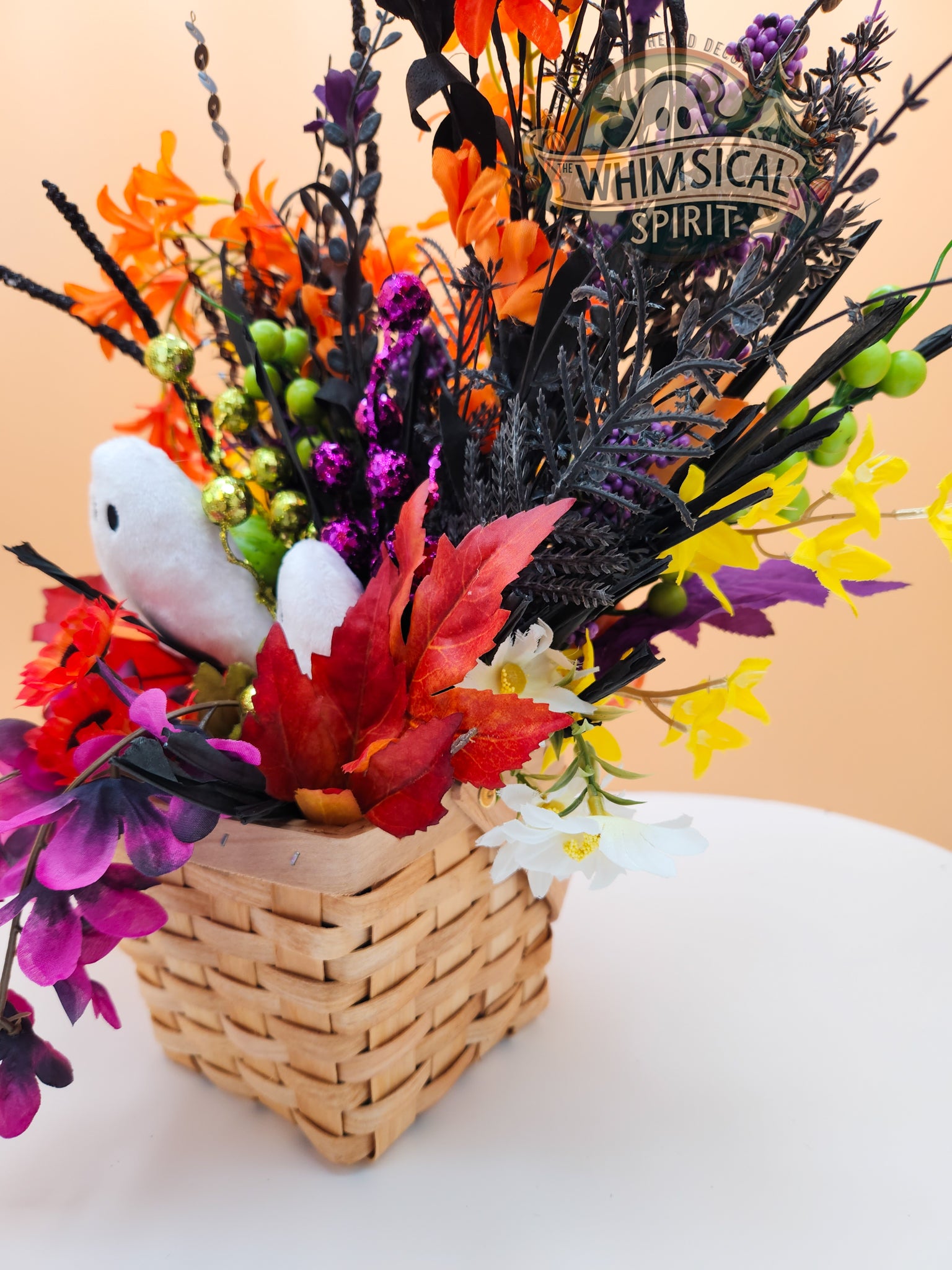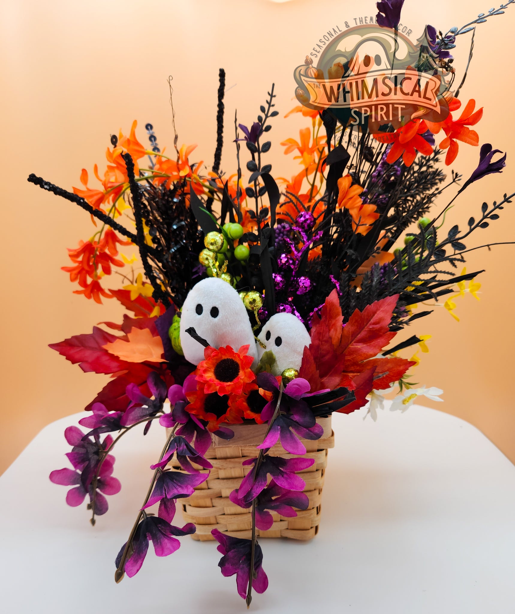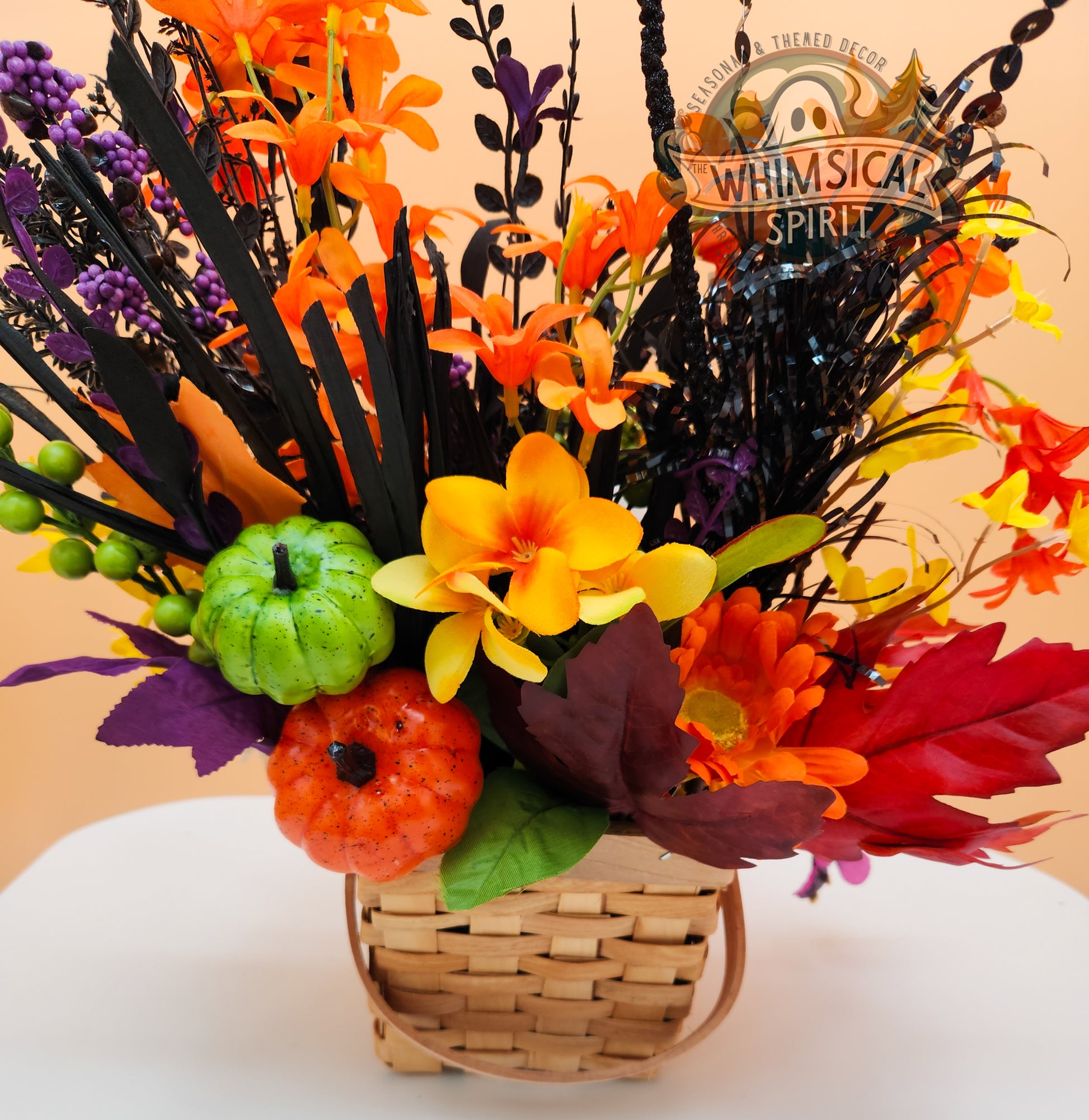 Whispers of fall drift through your home with this enchanting centerpiece, blending warm autumn hues with a touch of mysterious elegance. Autumn Apparitions features layered textures, seasonal blooms, and subtle rustic details that evoke the crisp air and golden light of fall days. Perfect for adding a cozy yet intriguing accent to your table, mantel, or entryway throughout the harvest season.