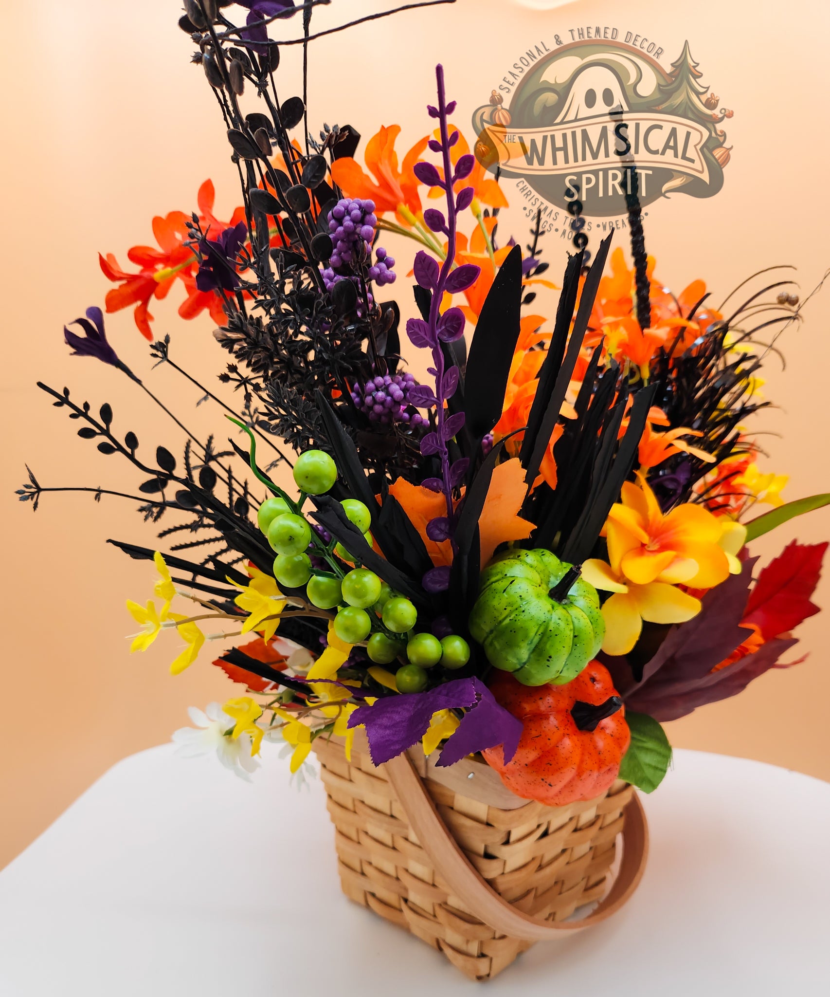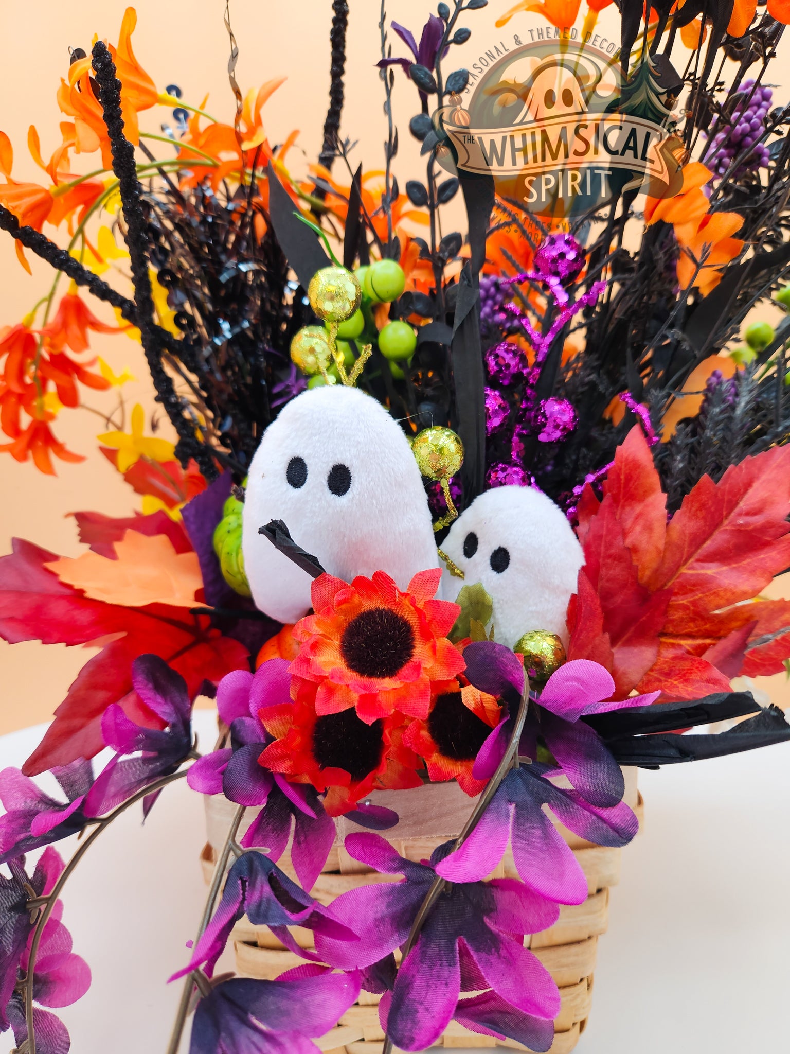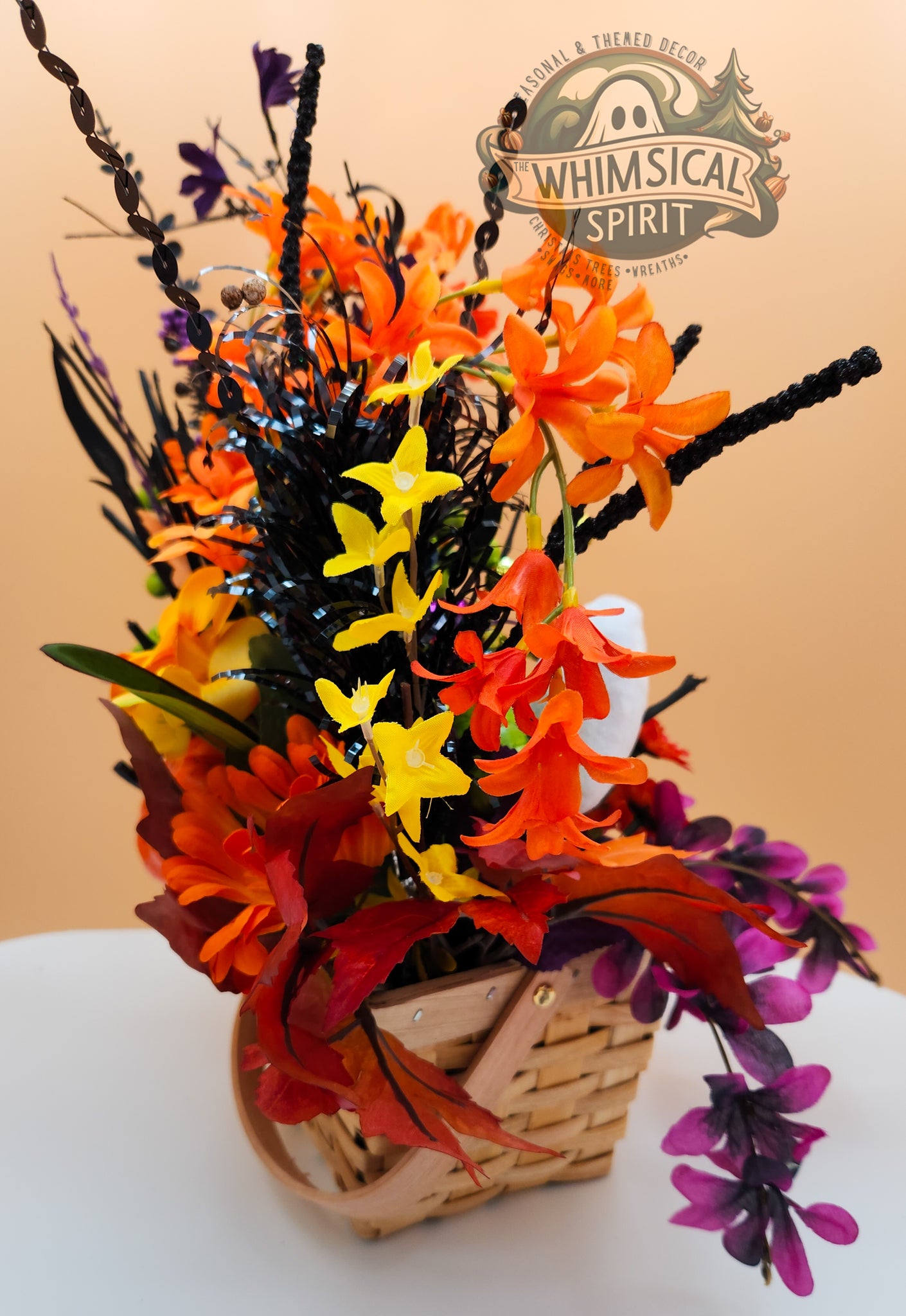 Whispers of fall drift through your home with this enchanting centerpiece, blending warm autumn hues with a touch of mysterious elegance. Autumn Apparitions features layered textures, seasonal blooms, and subtle rustic details that evoke the crisp air and golden light of fall days. Perfect for adding a cozy yet intriguing accent to your table, mantel, or entryway throughout the harvest season.