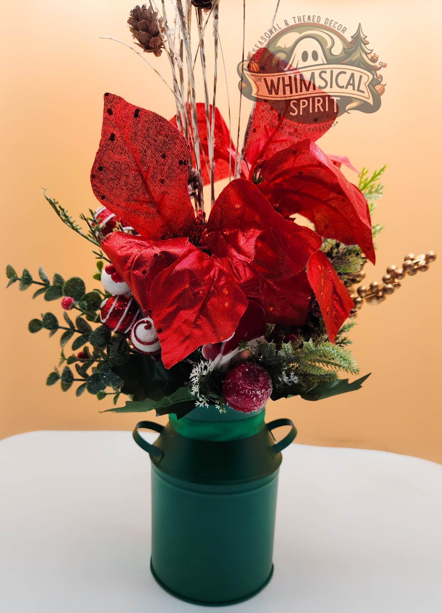 Welcome the season with Festive Gnomecomings - a heartwarming centerpiece that celebrates the joy of coming home for Christmas. Nestled in a classic green tin marked “Merry Christmas,” this playful design features a cheerful gnome in a black-and-white plaid hat surrounded by frosted greenery, red poinsettias, pinecones, and glittering holiday accents.