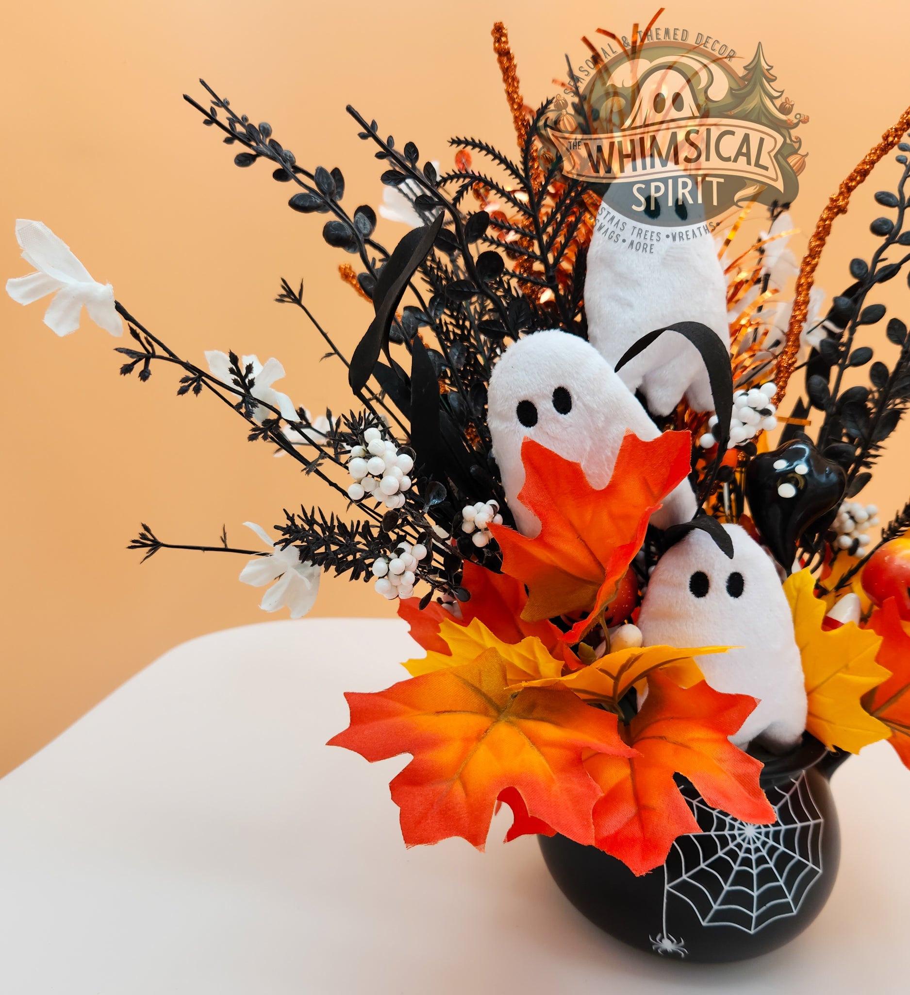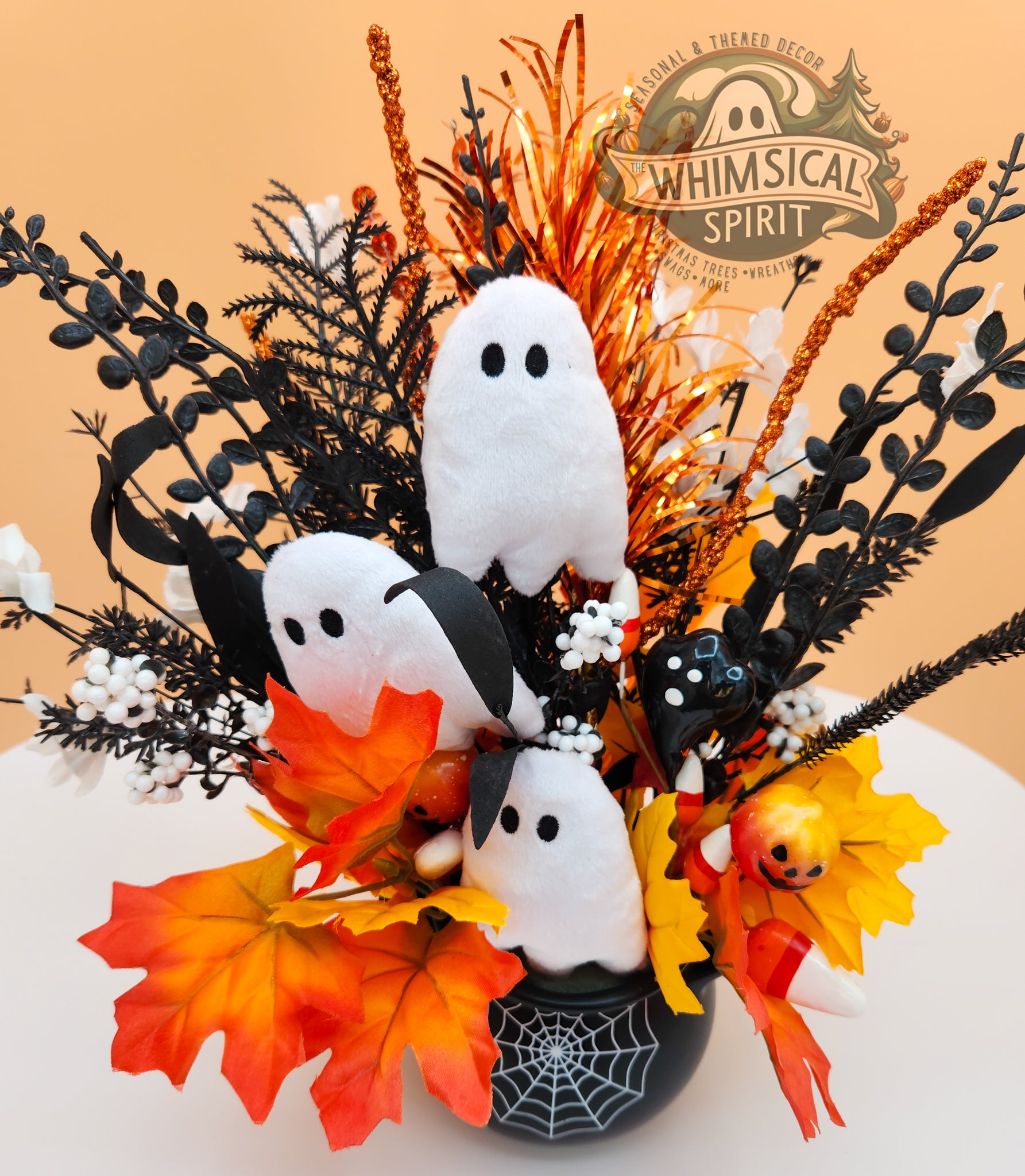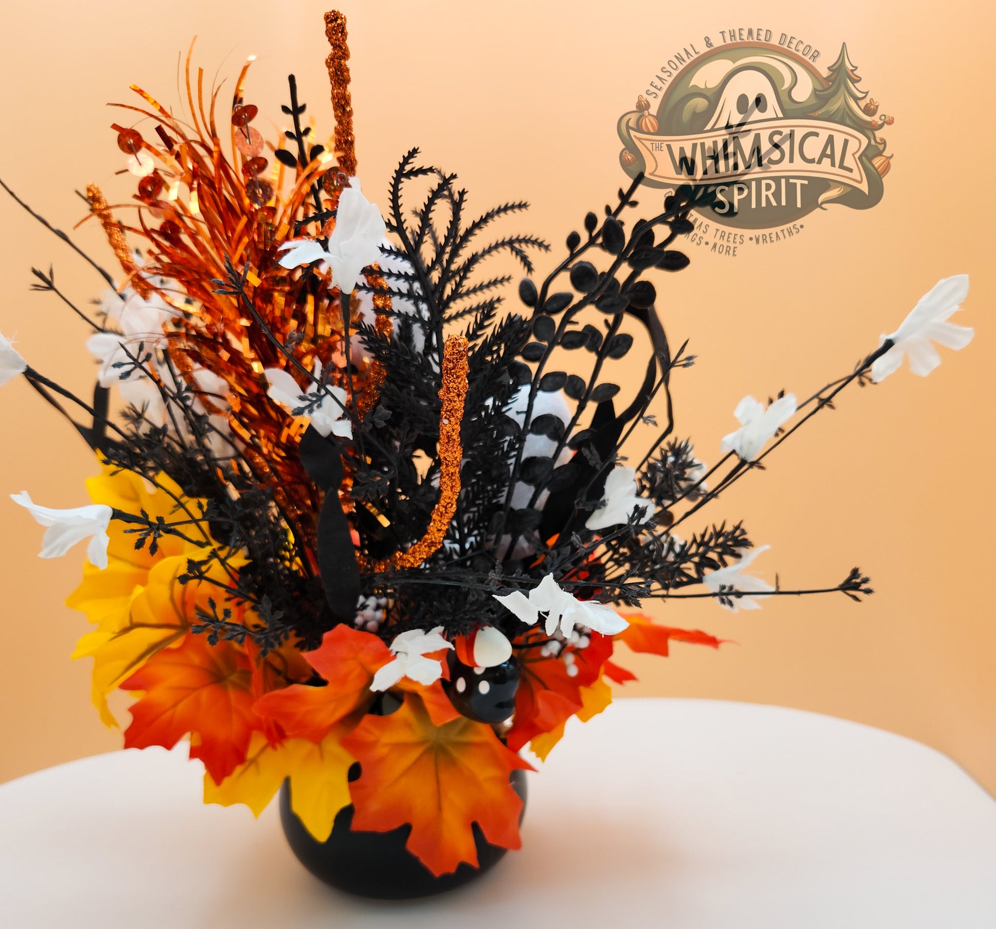 Welcome the spooky season with Ghoul Gathering, a playful Halloween centerpiece perfect for your table, mantel, or entryway. Featuring eerie black florals, ghostly accents, and pops of Halloween color, this piece brings a fun yet spooky vibe to your decor. Whether you're hosting a Halloween party or simply want to add a touch of haunted charm to your space, Ghoul Gathering is ready to make your home the ultimate gathering place for ghouls and guests alike.
