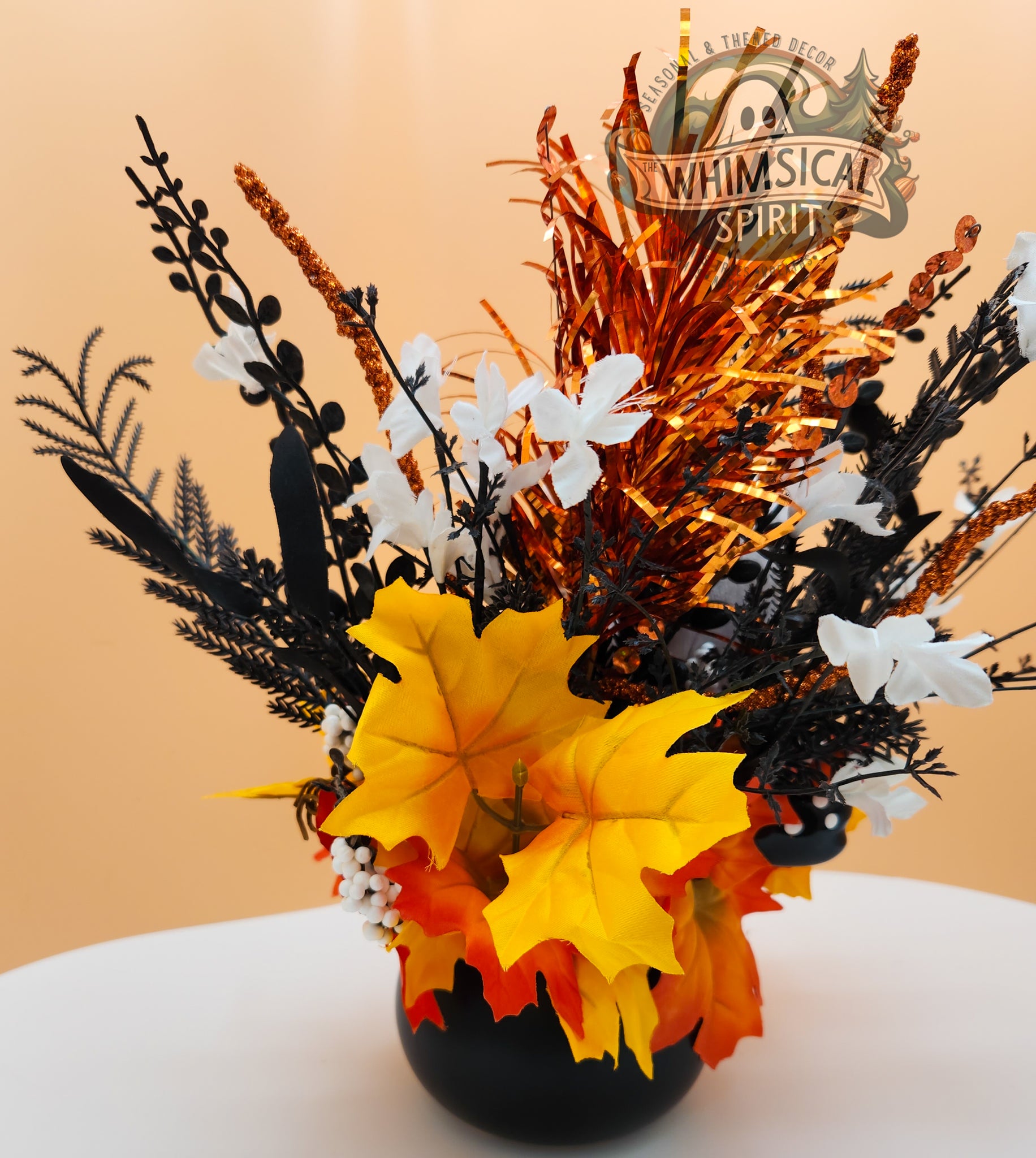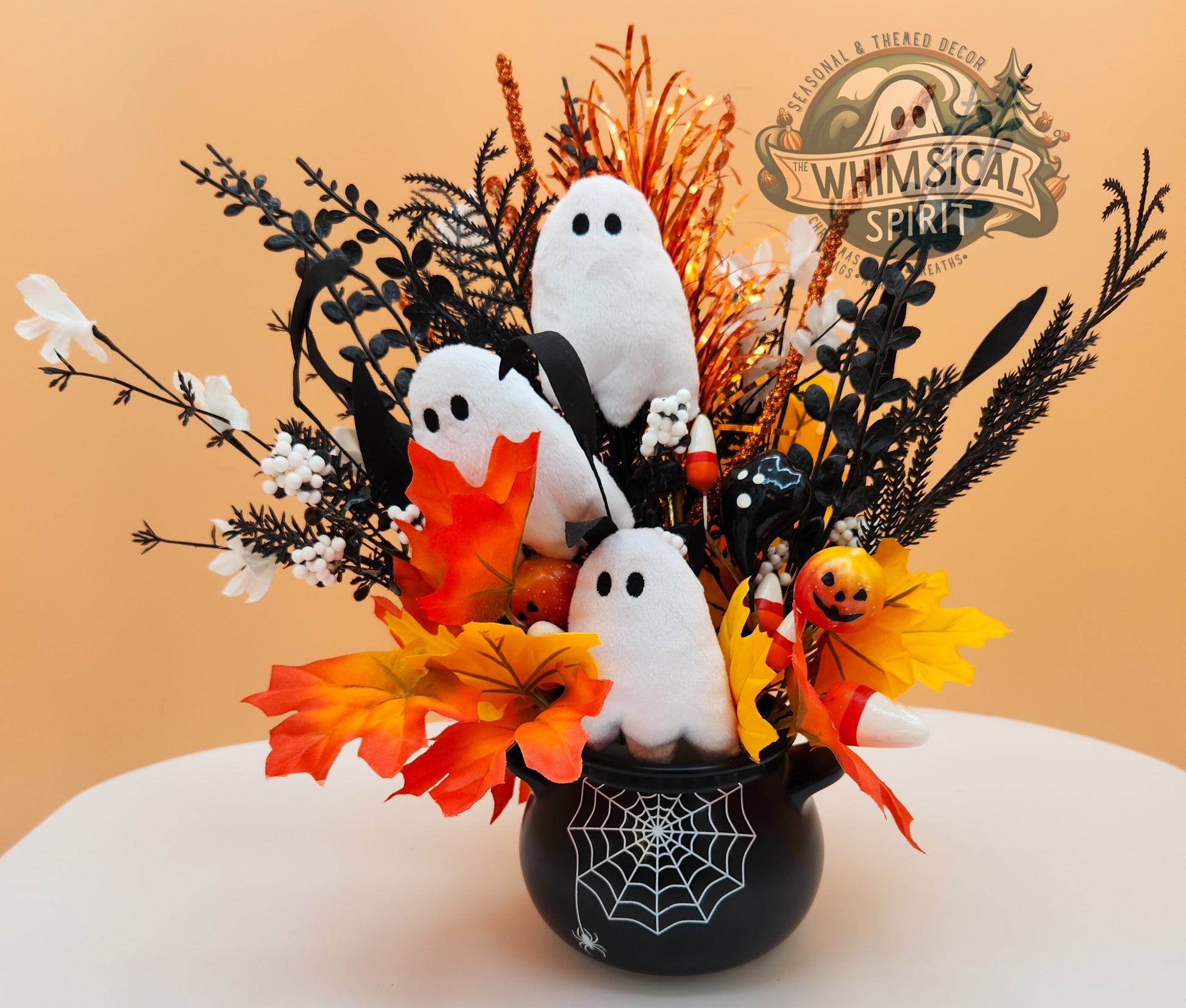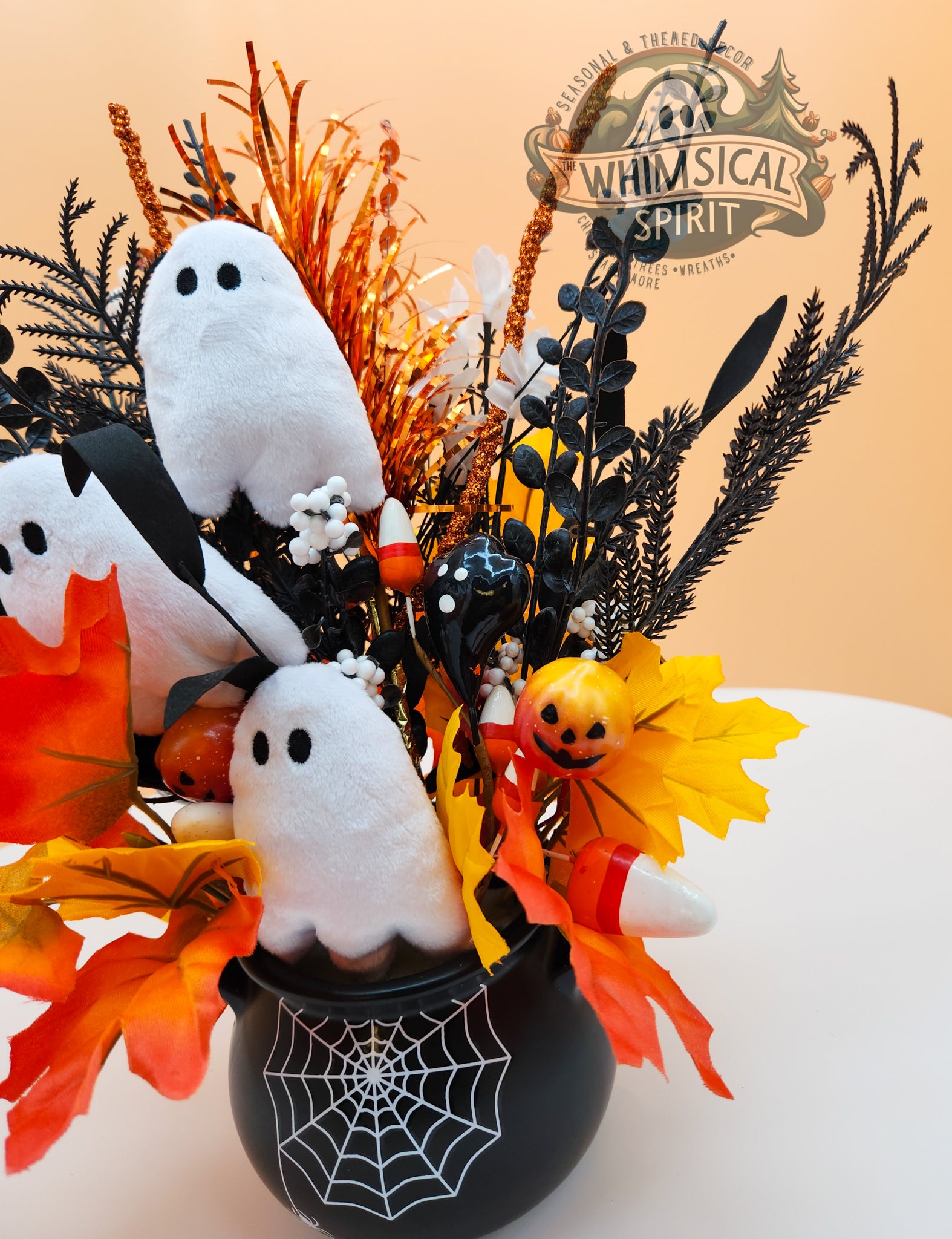 Welcome the spooky season with Ghoul Gathering, a playful Halloween centerpiece perfect for your table, mantel, or entryway. Featuring eerie black florals, ghostly accents, and pops of Halloween color, this piece brings a fun yet spooky vibe to your decor. Whether you're hosting a Halloween party or simply want to add a touch of haunted charm to your space, Ghoul Gathering is ready to make your home the ultimate gathering place for ghouls and guests alike.