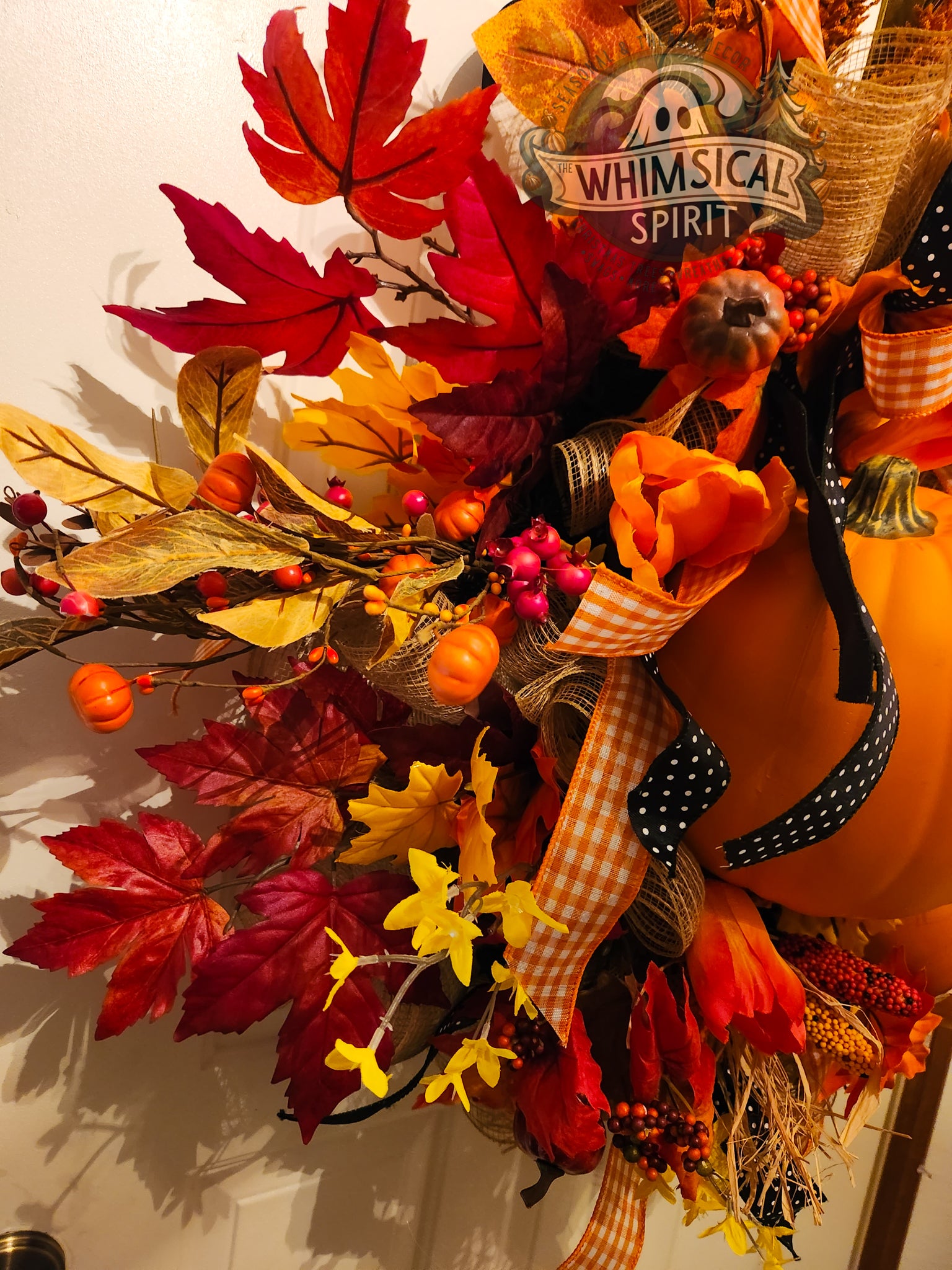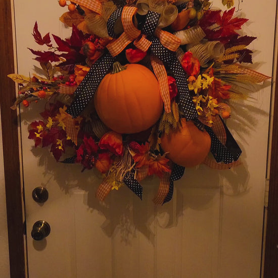 Welcome autumn in all its splendor with our Harvest Homecoming wreath—a grand celebration of fall’s rustic beauty. Bursting with vibrant maple leaves, golden wheat stalks, plump pumpkins, and cozy plaid and burlap ribbons, this handcrafted design evokes the charm of a crisp autumn day and the warmth of returning home. Whether you're decorating for Thanksgiving, the harvest season, or simply adding a festive touch to your door, this wreath sets the perfect tone for gatherings and gratitude. Made with care, and perfect for farmhouse, rustic, or traditional décor lovers.