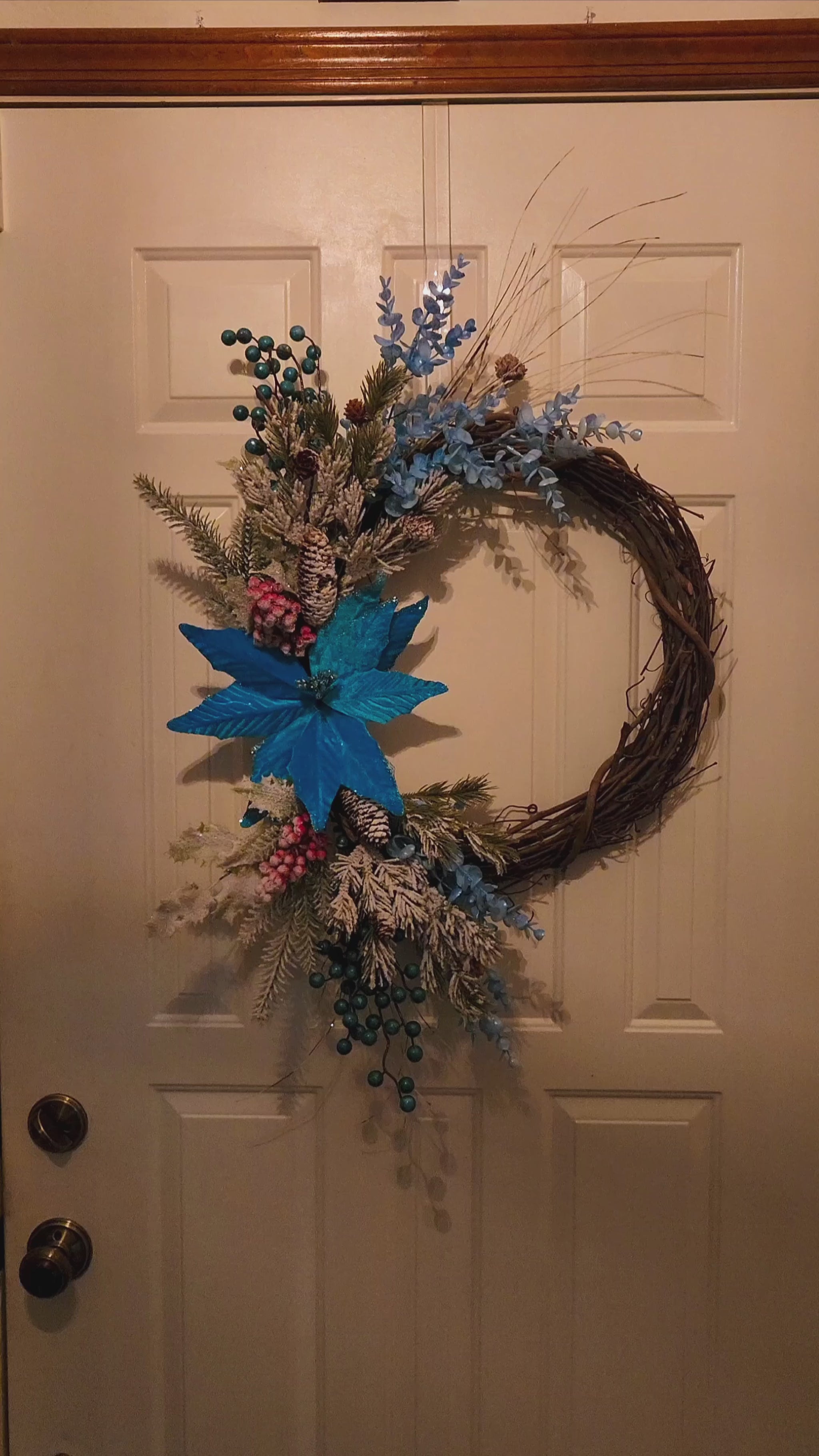 Winter's Whisper is created on a 16" grapevine base.